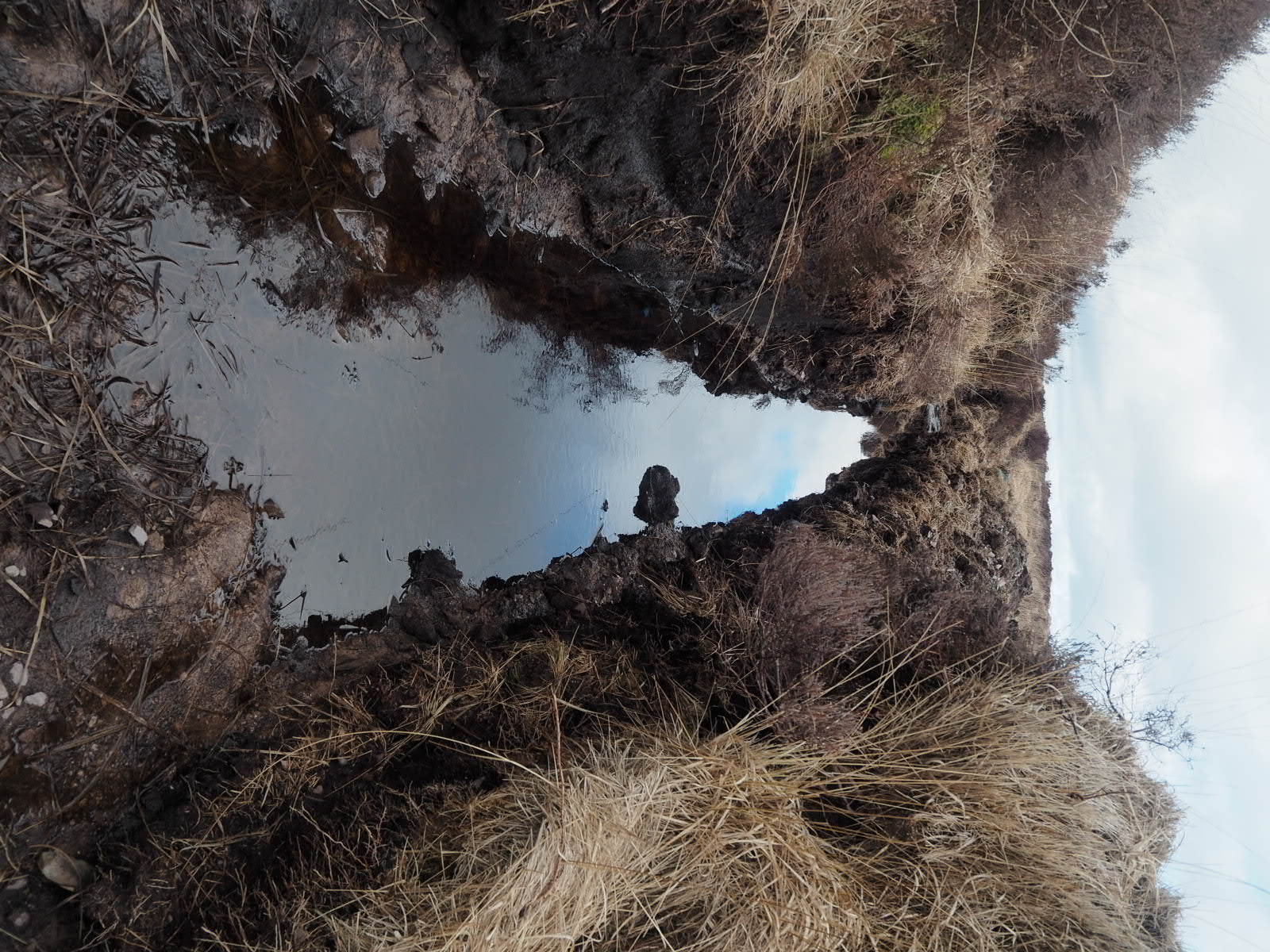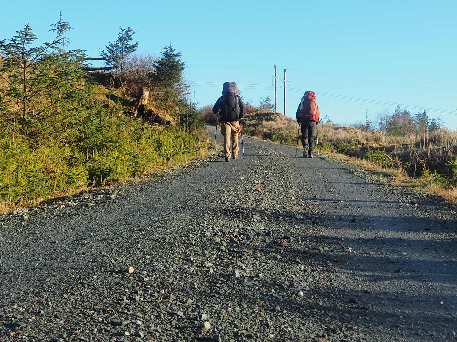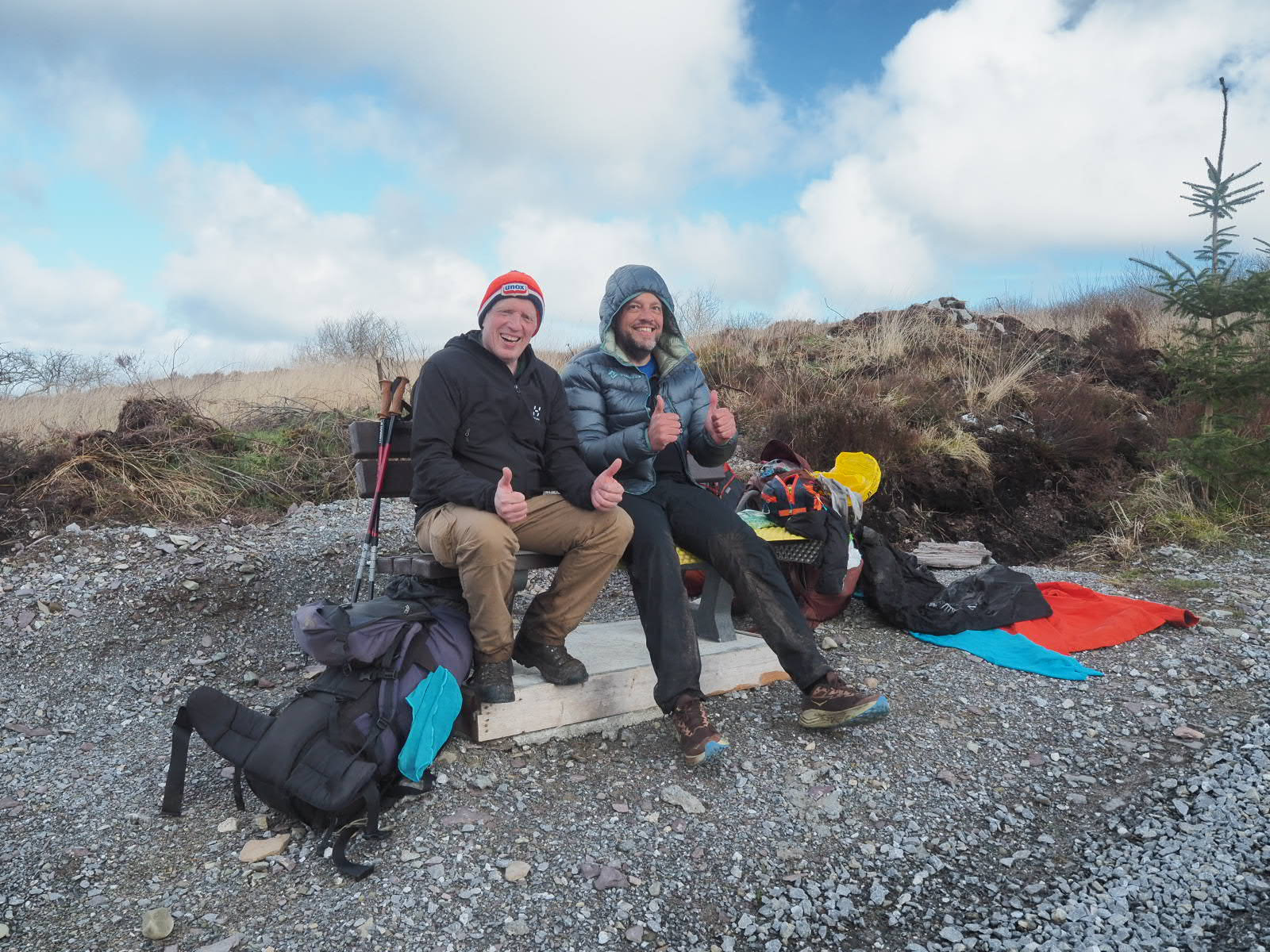 We start our hike in sunshine and keep this for quite a large portion of the day! We hike nice tracks, but o ce again, the trail offers Rein first hand experience of what we meant with ‘the trail was more like a river’, when he needs to climb up a little waterfall that appears to be the trail. After a boggy wet walk (this time in waterproof socks, so no wet and cold feet!) we come to a marker pointing left, across a brand new barbed wire fence, without a style. Well there is an old style, a meter or so outside of the fence….